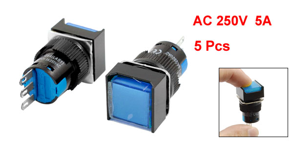 Item Name Push Button Switch Type Momentary, 1NO 1NC Voltage AC 250V, 5A Button Color Blue Button Size 15 x 15mm/0.6'' x 0.6''(L*W) Thread Diameter 15.6mm/0.61'' Size 17 x 17 x 38mm/0.7'' x 0.7'' x 1.5''(L*W*H) Material Plastic, Metal Weight 32g Package Content 1 x Push Button Switch - Reviews