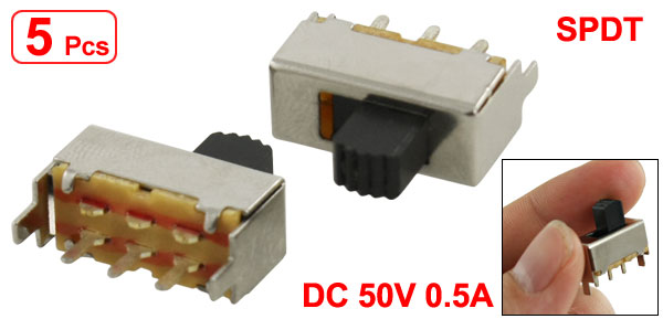 5 x 6.2mm Height Knob 3 Pin 2 Position 1P2T SPDT Mini Slide Switch 0.5A 50V DC