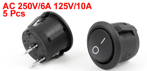 5 X AC 250V/6A 125V/10A 2-Pin 2P SPST I/O Snap In Boat Rocker Switch