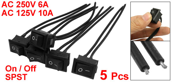 5 x AC 250V/6A 125V/10A ON OFF SPST Rectangle Rocker Switch Cable for Car