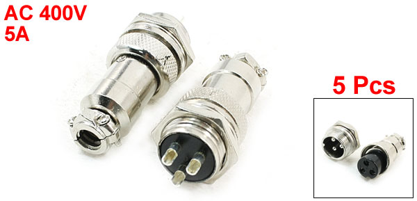 5 x AC400V 5A 3 Pins 16mm Thread Aviation Circular Plug Male Connector