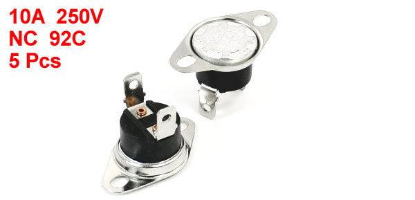 Product Name Thermostat Model.No KSD301 Action Type (NC)Normal Closed SPST Action Temperature 92 Degree Celsius Rating 10A 250V Head Dia 16mm / 0.63" Size(Each) 3.2 x 2.2cm/ 1.26" x 0.87"(L*T) Material Metal, Plastic Color Black, Silver Tone Net Weight 22g Package Content 5 x Thermostat - Reviews