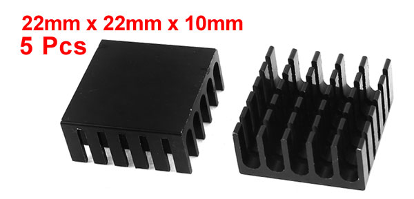5 x Black Aluminum Radiator Heat Sink Heatsink 22mm x 22mm x 10mm