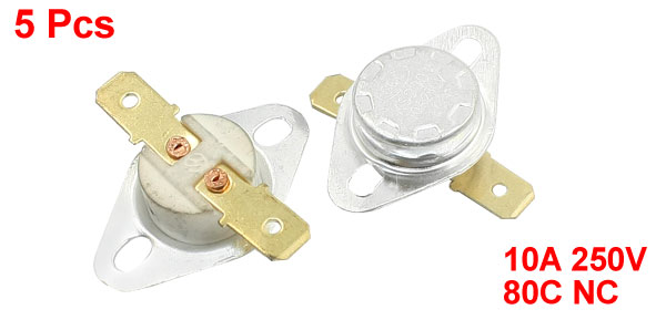 Product Name Thermostat Model.No KSD301 Action Type (NC)Normal Closed SPST Action Temperature 80 Degree Celsius Rating 10A 250V Head Dia 16mm / 0.63" Size(Each) 3.2 x 1.2cm/ 1.26" x 0.63"(L*T) Material Metal, Plastic, Ceramic Color White,Silver Tone, Gold Tone Net Weight 29g Package Content 5 x Thermostat - Reviews