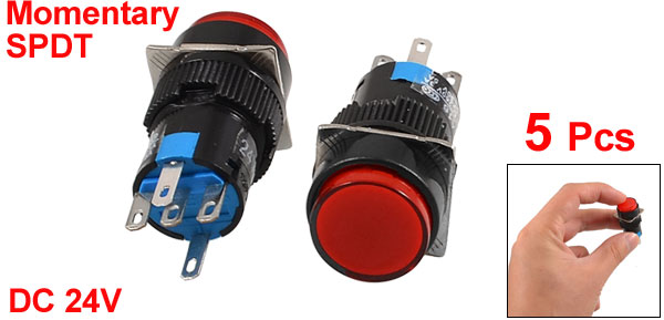 5 x DC 24V Red Light 1NO 1NC Panel Mount SPDT Momentary Push Button Switch