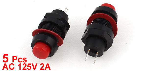 5 x DS-213 2Pins Momentary SPST Push Button Switch Red AC 125V 2A