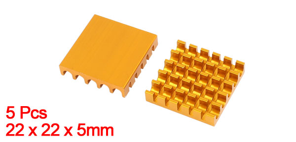 5 x Gold Tone Aluminum Radiator Heat Sink Heatsink 22mm x 22mm x 5mm