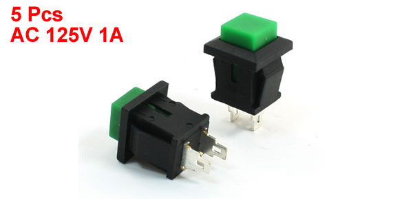 5 x Green Cap Square Momentary 2-Pin Push Button Switch SPST