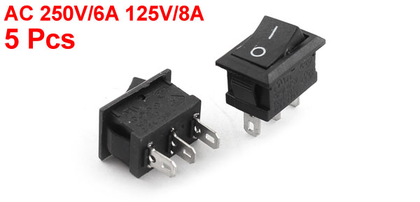 5 x KCD1-101 3Pin SPDT ON/OFF Power Rocker Switches Black AC 250V/6A 125V/8A