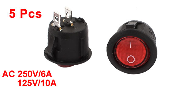 5 x KCD1-105 2Pin SPST NO/OFF Round Rocker Power Switch AC 250V/6A 125V/10A