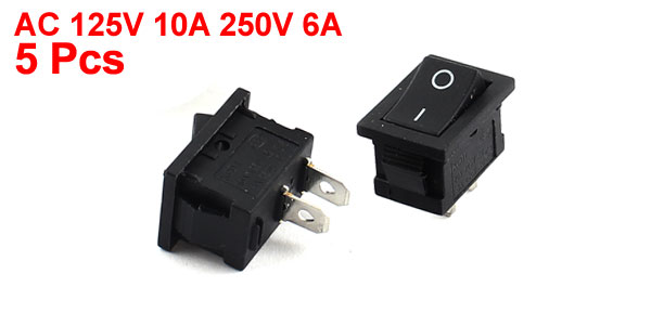 5 x KCD1 2Pin SPST ON/OFF Rocker Switch AC 125V 10A 250V 6A