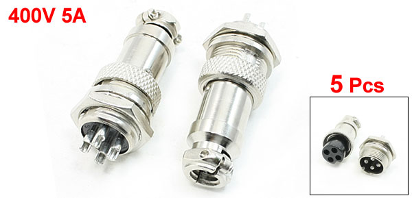 5 x Panel Mounting 16mm 4Pin Male Female Metal Aviation Connectors Plugs