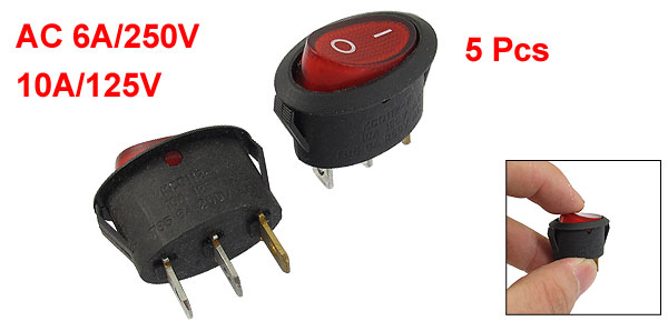 Terminals 3 Pins Position On-Off Light Color Red Rated Voltage AC 6A/250V, 10A/125V Overall Size 25 x 18 x 27mm / 1" x 0.7" x 1.1" (L*W*H) Mounting Size 22 x 13mm / 0.9" x 0.5" (L*W) Color Black, Red Material Plastic, Metal Total Weight 24g Package Content 5 x Rocker Switch - Reviews