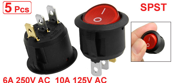 5 x Red Light Illuminated 3 Pin ON-OFF SPST Round Rocker Switch 6A/250V 10A/125V