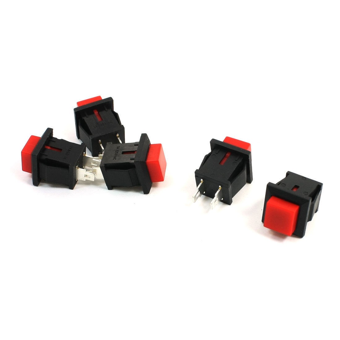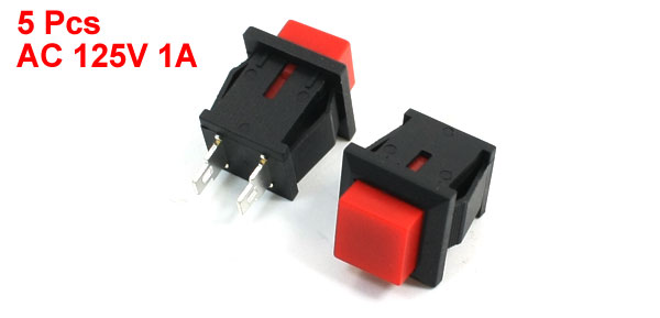5 x Red Square Head SPST Non-Locking Push Button Switch 125VAC 1A