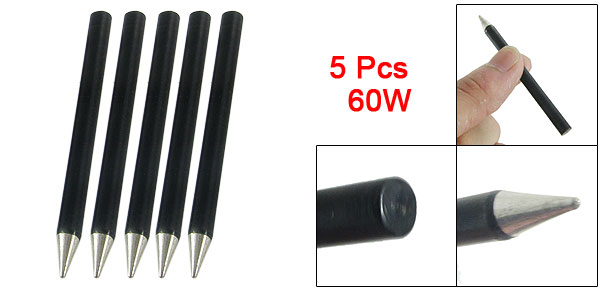 Product Name Soldering Iron Tip Material Metal Power 60W Design Tip Total Length 70mm / 2.76" Shank Diameter 6mm / 0.24" Tip Dia 2mm / 0.08" Color Black, Silver Tone Weight 70g Package Content 5 Pcs x Soldering Iron Tip - Reviews
