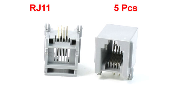 5 x RJ11 6P4C 6 Position 4 Contact PCB Jack Telephone Female Connector Gray