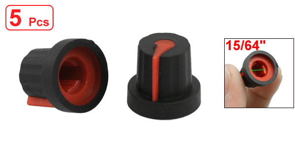 Product Name Potentiometer Control Knob Knob Top Diameter 11mm / 0.43" Knob Base Diameter 16mm / 0.63" Shaft Insert Diameter 6mm / 15/64" Knob Total Height 14.5mm / 0.57" Material Plastic, Rubber Main Color Black, Red Weight 7g Package Included 5 x Potentiometer Control Knob - Reviews