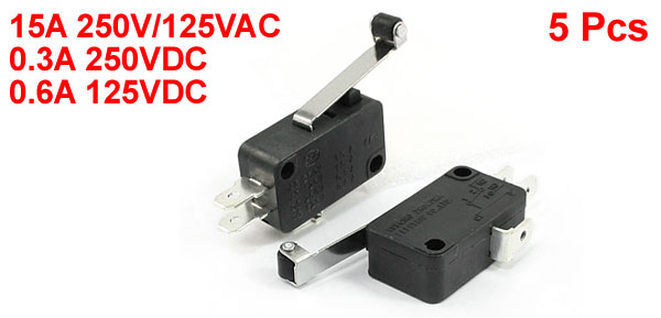5 x SPDT 1NO 1NC Long Hinge Roller Lever Actuator Momentary Micro Switch