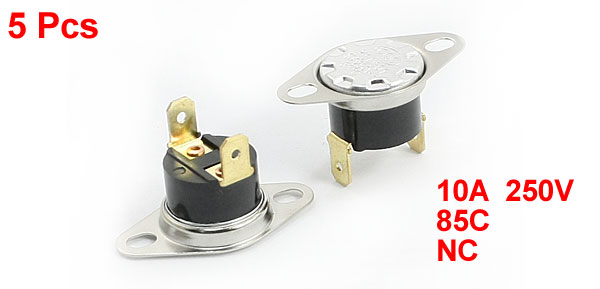 Product Name Thermostat Model.No KSD301 Action Type (NC)Normal Closed SPST Action Temperature 85 Degree Celsius Rating 10A 250V Size(Each) 3.2 x 2.2cm/ 1.26" x 0.87"(L*T) Material Metal, Plastic Color Black, Silver Tone Net Weight 22g Package Content 5 x Thermostat - Reviews