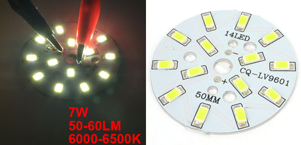 50-60LM 7W 14LEDs 5730 SMD White + 48mm Circle Aluminum Base PCB Plate