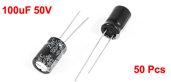 Product Name Electrolytic Capacitor Type Radial Maximum Temperature 105°C Voltage 50V Capacitance 100uF Size 8 x 12mm/0.3" x 0.5"(D*H) Lead Space 4mm Lead Length 2.7mm/0.1", 2.3mm/0.09" External Material Aluminum Total Net Weight 49g Main Color Black, Silver Tone Package Content 50±2% x Electrolytic Capacitors - Reviews