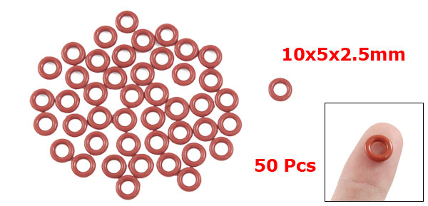 Product Name O Ring Material Silicone Outside Diameter 10mm / 0.39" Inner Diameter 5mm / 0.2" Thickness 2.5mm / 0.1" Color Dark Red Weight 7g Package Content 50 x Silicone O Ring - Reviews