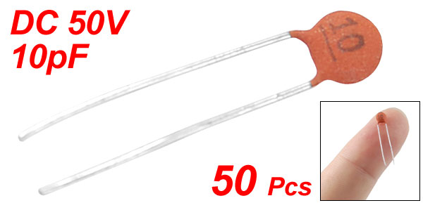 Product Name Ceramic Disc Capacitor Features Low Voltage Withstand Voltage DC 50V Capacitance 10pF Capacitance Tolerance ± 10% Lead Pitch Spacing 2.5mm / 0.1'' Body Dimension(Each) 3 x 1.5mm / 0.1" x 0.05"(D*T) Weight 3g Color As Picture Show Package Content 50 (± 2%) x Ceramic Disc Capacitors - Reviews