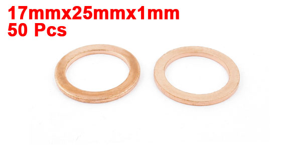50 Pcs 17mmx25mmx1mm Copper Flat Washer Industrial Gasket Seal Fitting Fasteners