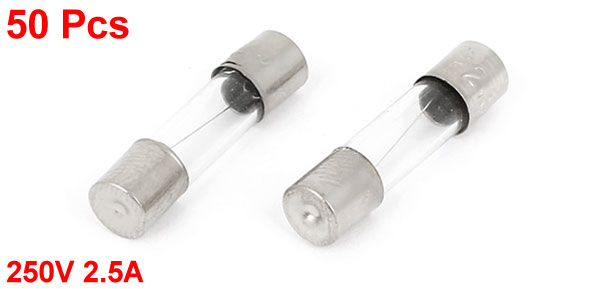 Product Name Glass Tube Fuses Quantity 50 Features Fast Blow(F) Low Breaking Capacity(L) Rated Voltage 250V Rated Current 2.5A Body Size 5 x 20mm/ 0.2" x 0.8"(D*L) Material Glass, Metal Color Silver Tone, Clear Weight 32g Package 50 (+/-2%) x Glass Tube Fuses - Reviews