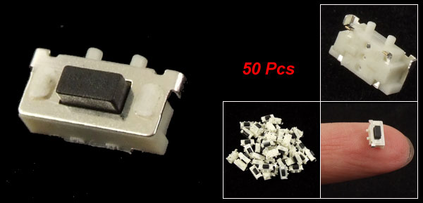 Product Name Micro Switch Contact Type Momentary Button Size 4 x 1.5 x 1mm / 0.16" x 0.06" x 0.04" (L*W*H) Dimension 7 x 3 x 2mm / 0.28" x 0.12" x 0.08" (L*W*H) Material Plastic, Electronic Parts Color Black, White, Silver Tone Net Weight 7g Package Content 50 (±2%) x Micro Switches - Reviews