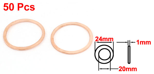 50 Pcs 20mmx24mmx1mm Copper Crush Washer Ring Engine Oil Drain Gasket