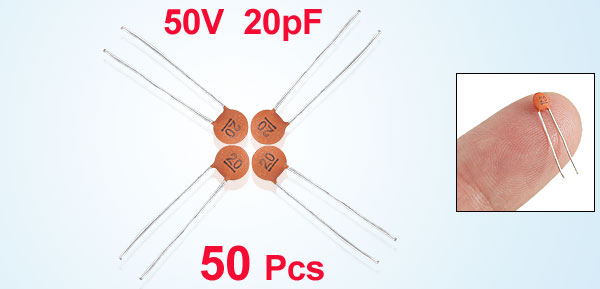 Product Name Ceramic Disc Capacitor Features Low Voltage Withstand Voltage DC 50V Capacitance 20pF Capacitance Tolerance ± 10% Lead Pitch Spacing 2.5mm / 0.1'' Body Dimension(Each) 3 x 1.5mm / 0.1" x 0.05"(D*T) Weight 3g Color As Picture Show Package Content 50 (± 2%) x Ceramic Disc Capacitors - Reviews