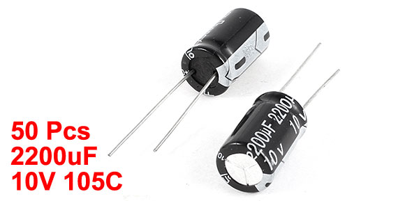 50 Pcs 2200uF 10V 105C Radial Electrolytic Capacitors Black 10x17mm