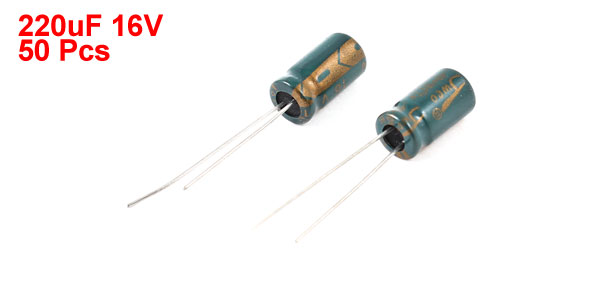50 Pcs 220uF 16V Radial Aluminnum Electrolytic Capacitors 6mm x 12mm