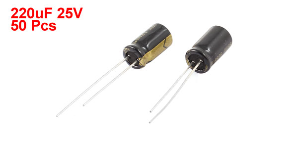 50 Pcs 220uF 25V Radial Aluminnum Electrolytic Capacitors 6mm x 11mm