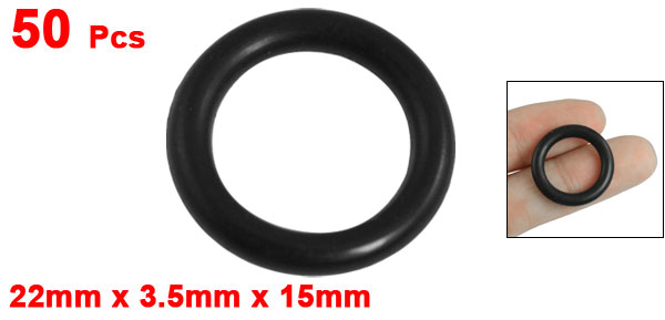 Product Name O Ring Material Nitrile Rubber(NBR) Quantity 50 ±2% Pcs External Diameter 22mm / 0.866" Inner Diameter 15mm / 0.59" Thickness 3.5mm/ 0.137" Color Black Weight 37g Package Content 50 x NBR O Ring - Reviews