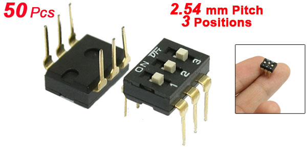 50 Pcs 2.54mm Pitch 3 Position Slide Type DIP Switches