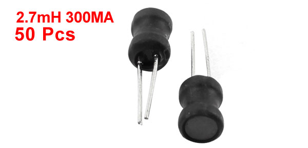 Details50 Pcs 2.7mH 300MA 6x8mm Power Plug-in Inducers Magnetic Core Inductors  Product Name Magnetic Core Inductor Material UL-polyolefin, Metal Inductance 2.7mH Current 300mA Tolerance 10% Body Size 6 x 8mm / 0.24" x 0.31"(D*H) Pin Length 14mm/ 0.55" Lead Distance 3mm / 0.12" Color Black, Silver Tone Net Weight 49g Package Content 50(±2%) x Magnetic Core Inductors