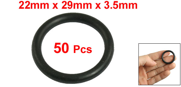 Product Name O Ring Material Nitrile Rubber(NBR) Quantity 50 ±2% Pcs External Diameter 29mm / 1.141" Inner Diameter 22mm / 0.866" Thickness 3.5mm/ 0.137" Color Black Weight 53g Package Content 50 x NBR O Ring - Reviews