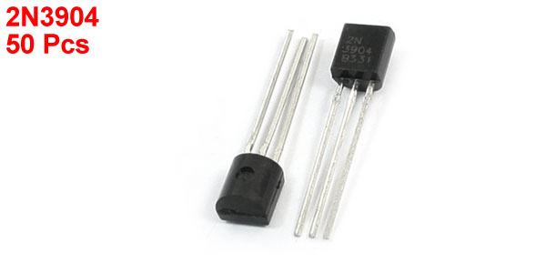 Details50 Pcs 2N3904 NPN Type General Purpose Transistor Triode 60V 0.2A  Product Name NPN Transistor Model 2N3904 Package TO-92 Collector Base Voltage 60V Collector Current 0.2A Collector Power Max Dissipation 0.35W Frequency 300MHz Pin Size 14 x 1mm/0.57" x 0.04"(L*Pitch) Body Dimension 4.5 x 4.5 x 3.5mm/ 0.18" x 0.18" x 0.14" (L*W*T) Weight 9g Package Content 50Pcs(±2%) Pcs x NPN Transistor