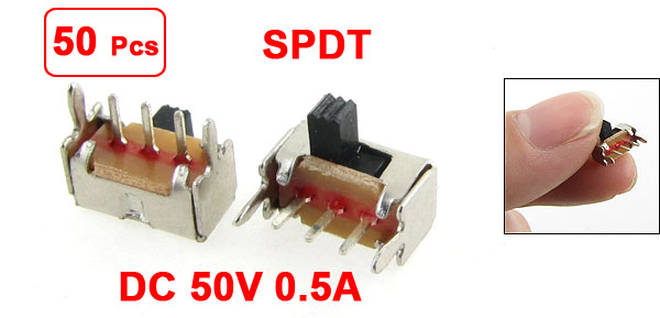 50 Pcs 2x2x3mm Knob 3 Pin 2 Position 1P2T SPDT Slide Switch 90 Deg 0.5A 50V DC