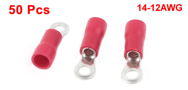 50 Pcs 3.5-4S Insulated Wire Connector Ring Crimp Terminal Red 14-12AWG