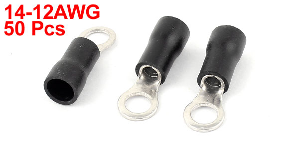 50 Pcs 3.5-5S Insulated Wire Connector Ring Crimp Terminal Black 14-12AWG