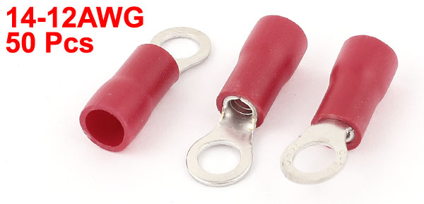 50 Pcs 3.5-5S Insulated Wire Connector Ring Crimp Terminal Red 14-12AWG