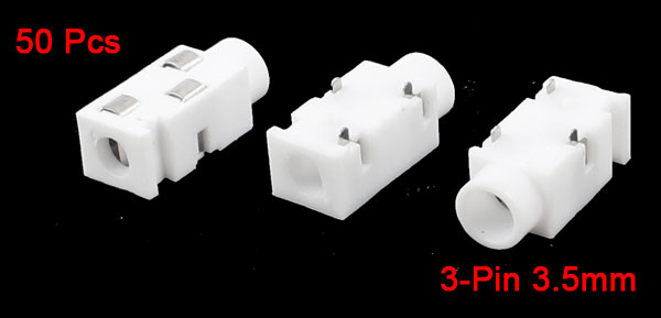 50 Pcs 3-Pin 3.5mm Female Headphone Stereo Socket Connector White