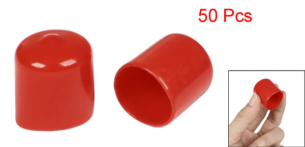 50 Pcs 31mm Height 22mm Inner Dia Round Tip Red PVC Insulated End Caps