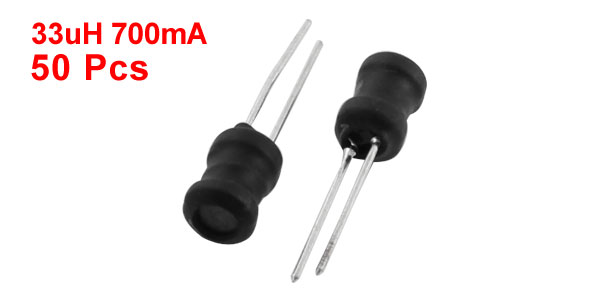 Product Name Radial Inductor Inductance 33uH Rating Current 700mA Tolerance 10% Body Size 5 x 7mm / 0.2" x 0.28"(D*H) Pin Size 0.55 x 14mm/ 0.22" x 0.55"(D*L) Lead Distance 2mm / 0.08" Color Black, Silver Tone Weight 32g Package Content 50Pcs(±2%) x Radial Inductor - Reviews