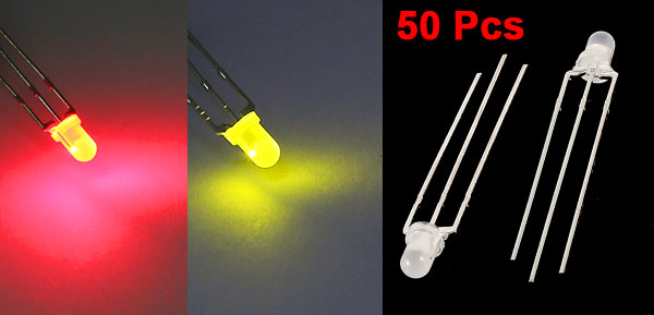 50 Pcs 3mm Common Anode 3Pin Red Green Light Emitting Diode LED Bulb