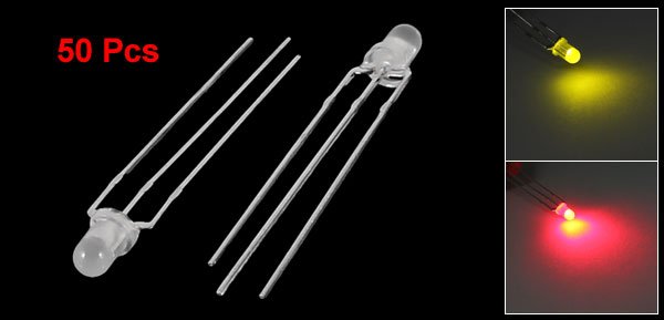 50 Pcs 3mm Common Cathode 3Pin Red Green Light Emitting Diode LED Bulb